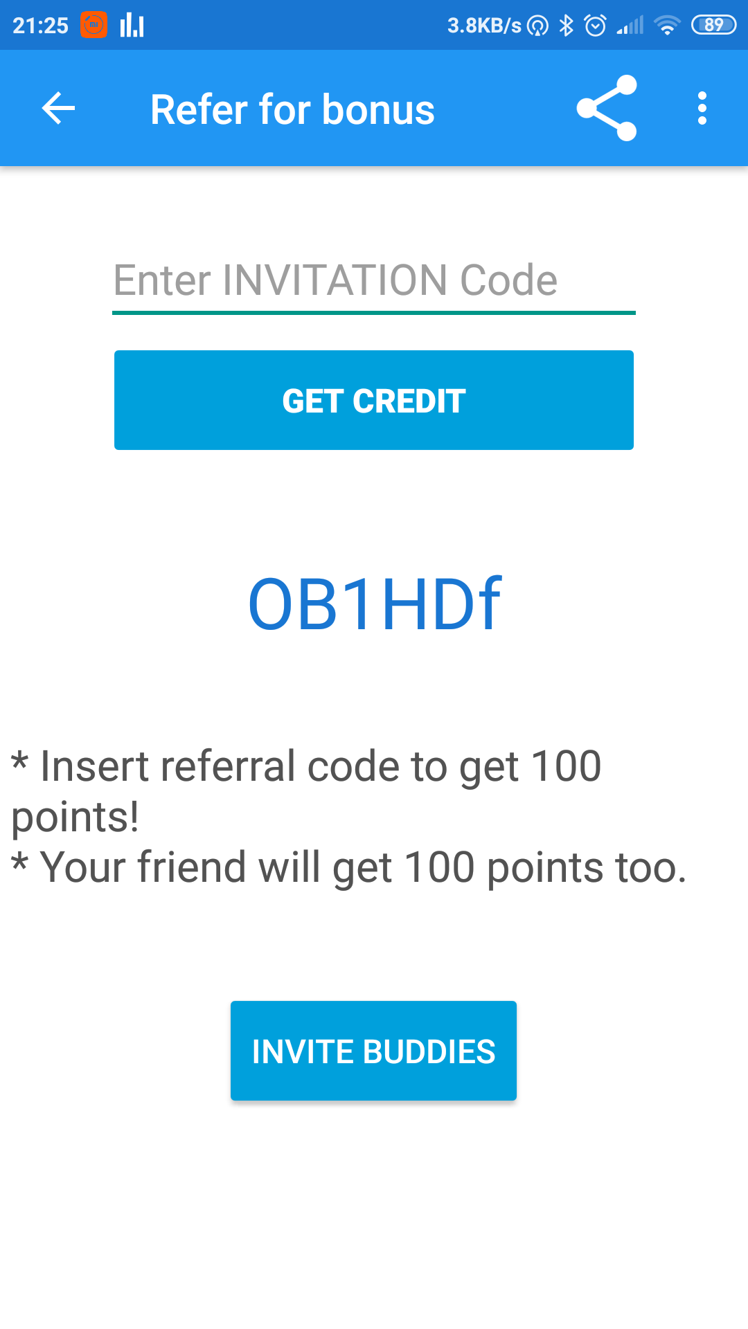 If you want to get more points you can share application with your friends. Use unique referral code with your friends and reach minimum payout points faster! You can share application somewhere on internet or just send individually my mail or any social system platform.
