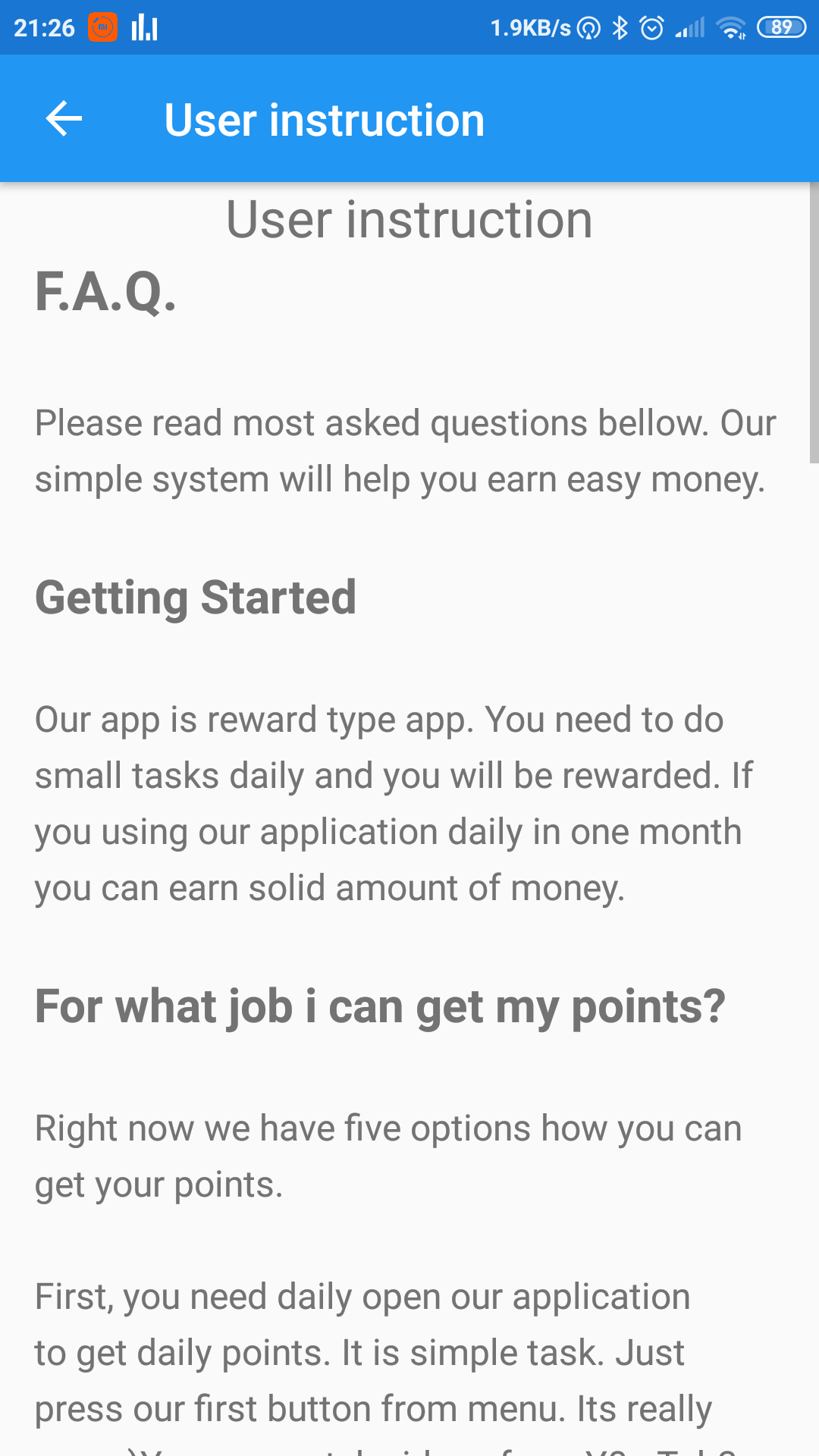 Our app is reward type app. You need to do small tasks daily and you will be rewarded. If you using our application daily in one month you can earn solid amount of money.